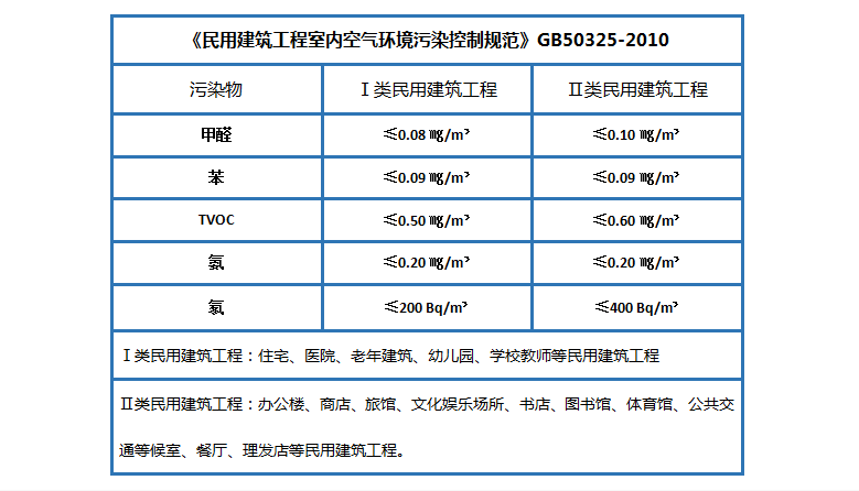 室內(nèi)空氣質(zhì)量有兩種評(píng)判標(biāo)準(zhǔn),一種是《民用建筑工程室內(nèi)環(huán)境污染控制規(guī)范》 GB50325-2010(下面簡(jiǎn)稱(chēng)50325)和 《室內(nèi)空氣質(zhì)量標(biāo)準(zhǔn)》 GB/T 18883-2002(下面簡(jiǎn)稱(chēng)18883)。